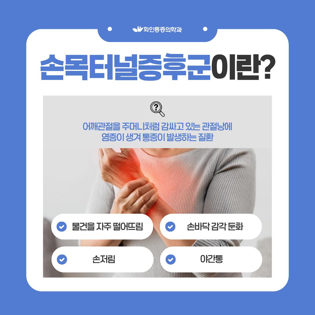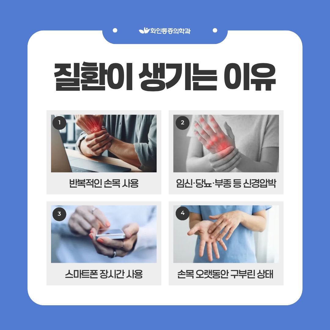 손목 통증, 반복된다면? 손목터널증후군 · 건초염 손목이 보내는 중요한 신호일 수 있습니다. |